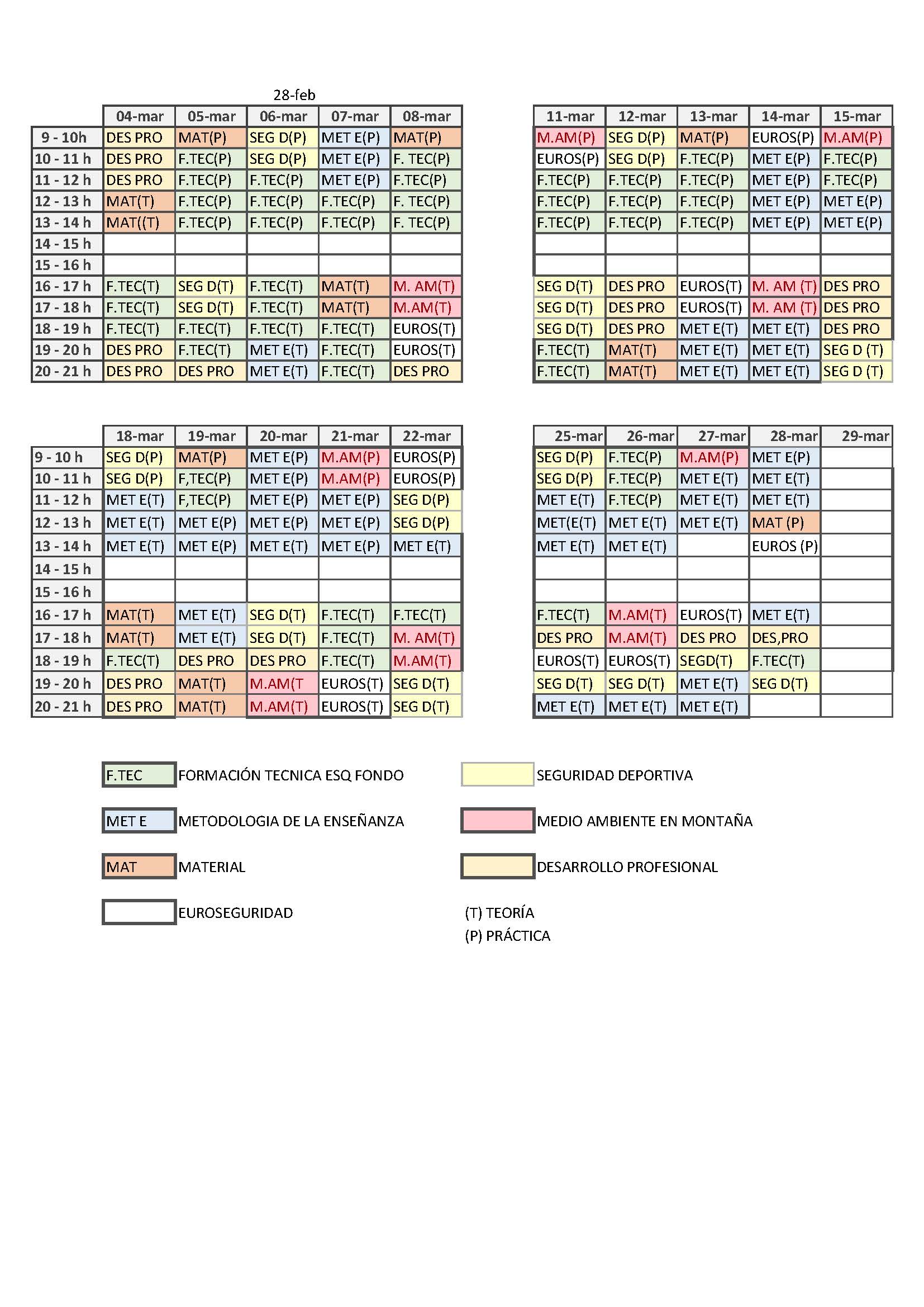 NOTA: Las prácticas de técnica clásica se realizarán siempre con esquís de ceras (no de escamas o de pieles).